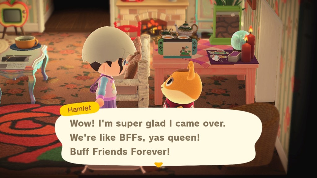 It does affect me though and reminds me of my obsession with weight loss. You can’t make Hamlet shut up about his muscles and I’ll never stop wanting to be more skinny either. Sorry for being toxic, it’s hurtful for me too. Here are some images of my best friend in Animal Crossing. I’ll try to share something more chill and cheerful when I post again