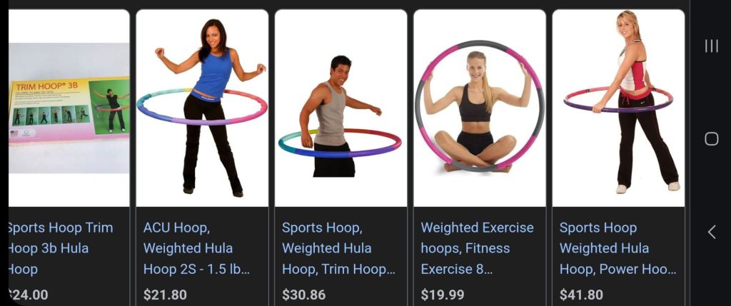 I used to exercise with a weighted hula hoop and would highly recommend that for anyone interested in a more fun form of fitness. I paid about $25 for mine, I got it at a sporting goods store in the mall (it was 2008), and I chose the lightest option offered there. It came in several pieces that snapped together and was pretty easy to use right away. There isn’t much to the workout but standing and rocking your core muscles. I never followed along a guided class for this (of course there are free ones on YouTube now) it was more of a free-style activity for me. With the right music, tv progam or a phone conversation it’s very enjoyable! I didn’t even know about podcasts back then. The hoop is large but flat enough it’s easy to “hide” behind a door or keep stored our of the way against a wall, and it can work in a pretty confined space (as long as you stay on the same spot, with enough clearance space around you). I’ve used it in a hotel room, and a small studio apartment, and it really did work without knocking into things. When I was packing and relocating a few years ago, feeling really exhausted, I asked my roommate if she wanted to keep the hoop, and was relieved (in the moment) she said yes. Sometimes, I think about getting another one to replace it, but I have a collection of other props already.