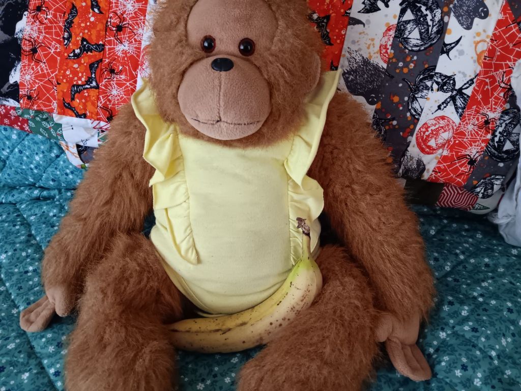 I’m not dressing up in a costume nor expecting any trick-or-treaters within my apartment building, it’s not really a holiday I do much to celebrate. The candy focus is off putting (I am carefully tracking and restricting what I eat), and my only child is grown up with her own plans. There is a collection of costumes in a storage bin under my bed (for example a sexy bumblebee, ballerina outfits with tutu in pink or black, a skeleton unitard, a neon sweatshirt that says Bouncer, etc) but it’s not something I’m in the mood to look through! I thought briefly it might be funny to dress as Tonia Haddix the deranged main character from “Chimp Crazy” on HBO, she had such a strong personal style. I already have a stuffed monkey doll to carry (my inspiration) and enough pink clothes to make a full outfit of them. Buying a wig or changing my hair seems like the biggest obstacles but there’s a beauty supply store about two blocks away that sells hair extensions and wigs, I could visit if I change my mind (very unlikely). I don’t have false eyelashes nor tons of makeup like she wore, but I think having an exaggerated eyeliner and overdrawn lips could help the costume along anyway. In the show, Tonia often fed her pet chimpanzees chicken nugget Happy Meals with Gatorade which could be another cute prop, but the plush monkey doll makes me hesitate about carrying McDonalds as well, it’s too many things that becomes an armful. Please feel free to take my idea though, it’s short notice but maybe someone is still stumped for a costume.