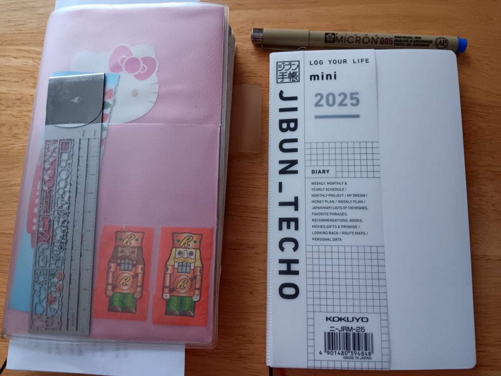 My New Planner- I haven’t written in it, I will wait until closer to January 2025. It’s so blank and inspiring! I’ve bought some tiny stickers for it, and am considering different pens this year too. My daughter used the Kokuyo Jibun Techo planner for a few years before I was convinced to try it (at first just to bond with her and give attention to something she cares about) but now I’m a convert. It’s a vertical layout where you can detail your daily activities in 30 minute increments. It’s pretty intense for a small B5 size notebook. Because it comes from Japan I have to use Google Lens to remind me what some areas of the planner are for but it is extremely helpful at keeping organized. There are pages for books, movies, gifts given & received, budgeting and so much more. It is a powerful amount of organization in such a small agenda.